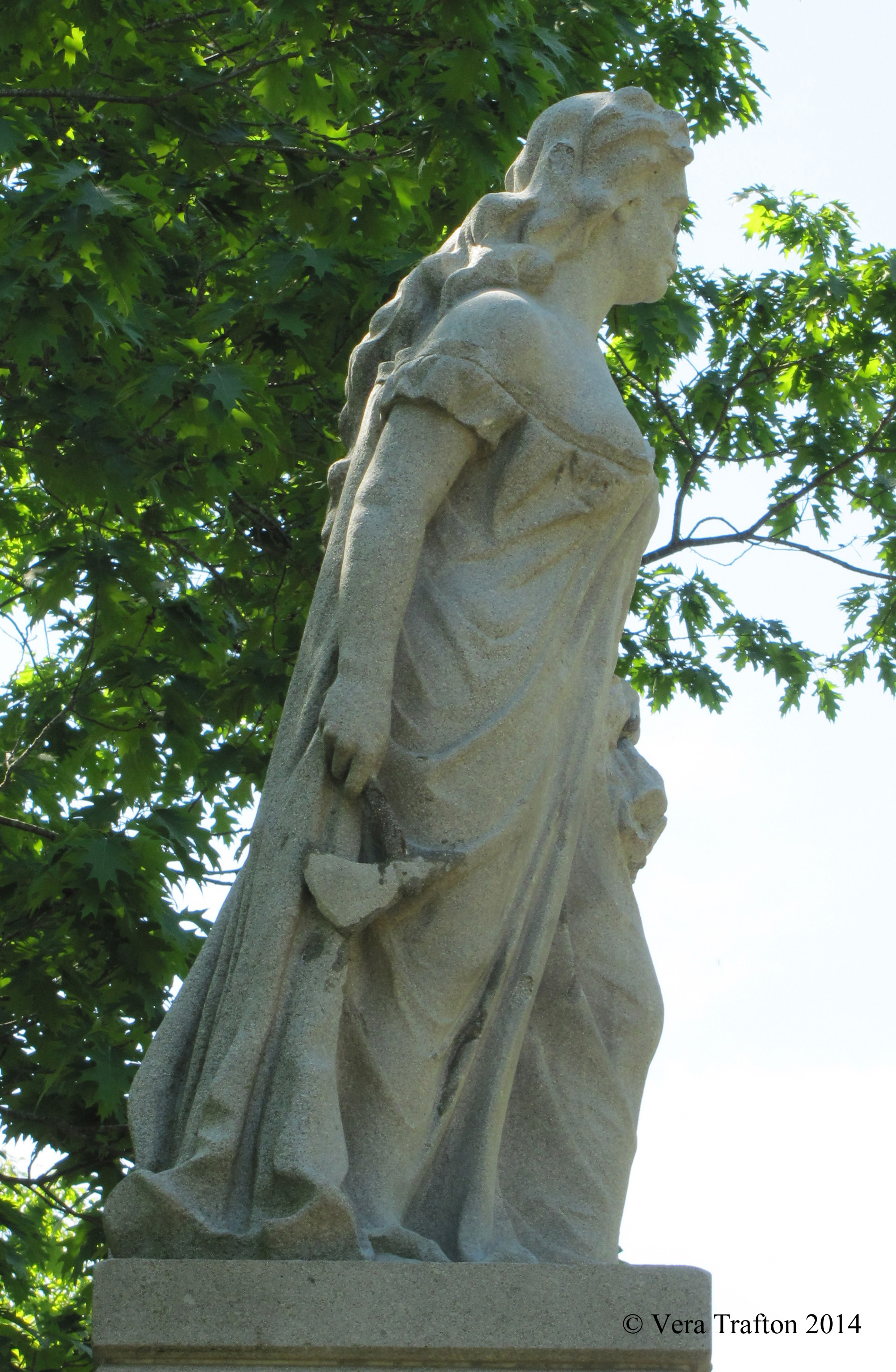 Her face, even in its current mutilated condition, expresses apprehension and grief combined with strength and determination. Hers is a woman’s face such as one might have encountered in any New England village in the seventeenth and eighteenth centuries, or such as one might have met or might meet in any place where dark and bloody times have been or are afoot and where women must respond with unaccustomed, tragic heroism, fighting fire with fire, or losing all. One can encounter such faces today. When we gaze on the tragic and heroic face of Hannah Duston as rendered by William Andrews, moreover, we are looking at the face of the first statue in the United States erected in honor of a woman (1874). For its historic importance as well as for its psychological and moral depth, we should value it and take care of it.