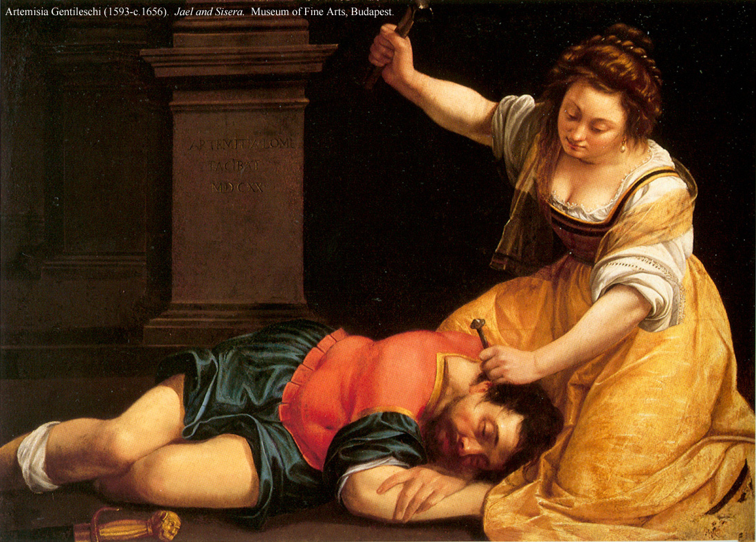 who told her story in a famous sermon as well as in an influential chapter of his Magnalia Christi Americana, published in 1702. Mather defines the quality of Hannah’s heroism by comparing her to Jael, a type of admirably strong female character from the Old Testament. Jael served God and Israel by luring the Canaanite general Sisera into her tent in order to kill him, which she did by driving a tent peg into his temple while he slept (Judges 4:17 22). By invoking Jael, Mather associates Hannah’s killing and scalping of her captors with God’s will and thus removes moral and emotional complexity from a gruesome and potentially troubling story. We can see the artistic result in the gorgeous but rather soulless painting of Jael and Sisera (1620) by Artemisia Gentileschi in the Museum of Fine Arts in Budapest. Jael smiles with satisfaction as she taps a fancy spike into the head of sleeping Sisera. Andrews and Caverly might have given Hannah a face of similar serenity had they wanted to affirm her bloody deed unequivocally, as Mather does, but instead they gave her a pained and haunted look that complicates and renders morally more interesting the image of her heroism.